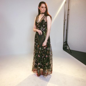 Beautiful Embroidered Mesh Dress with V-neck and embroidery detail throughout.