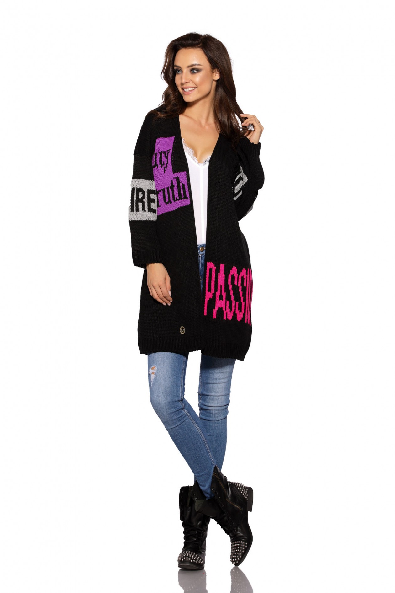 The perfect cardigan for the blonde is a great idea for a gift, but also a chance to express yourself. The cardigan has an oversize cut, perfect for any season. Colored inscriptions make the cardigan take on a casual & unique character and long sleeves, making it perfect for colder days.