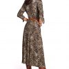 You will love the soft feel of this printed fabric and the timeless cut of the midi dress with the row of buttons running from collar down. Three-quarter length sleeves have a tie detail in the cuffs. Faux leather belt with a golden buckle is included.