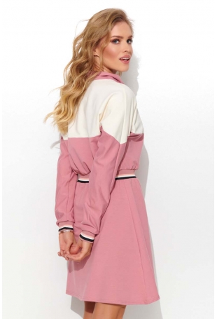 Sweatshirt dress with stand-up collar and zip (pink), which adds a modern character. The dress has long sleeves finished with decorative style. The strongly marked waist perfectly emphasizes the female figure. This dress is a great choice for weekend trips or spring walks. Pair it with comfortable sneakers or wedges.