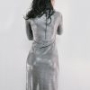 It’s party time y’all. Own it in maxi silver turtleneck dress. The silver turtleneck maxi dress has maxi length with side slit, hidden back zipper and two side hidden zippers.