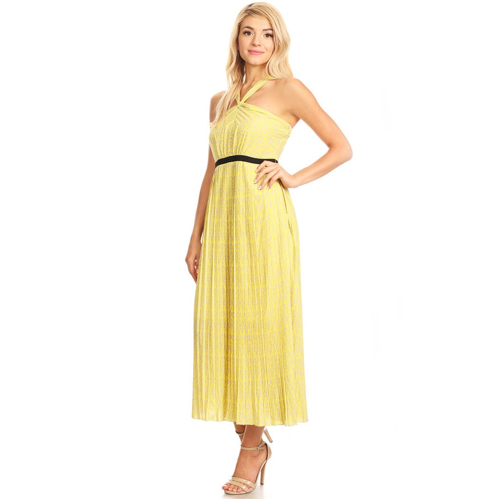 Beautiful Chiffon Print Maxi dress with black waist band and tie halter neck.